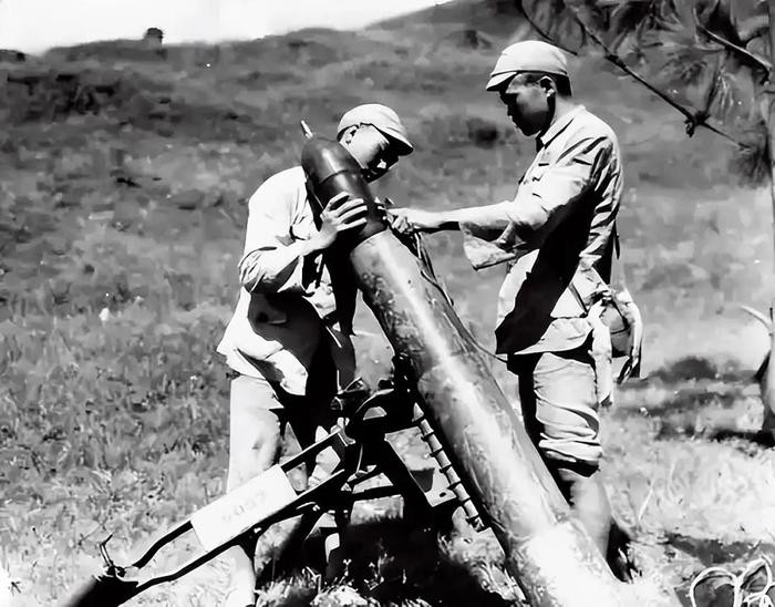 1944年8月3日,腾冲战役中,中国远征军第二十集团军第53军第116师第348团的士兵正在装填150毫米迫击炮,准备炮击腾冲城墙。